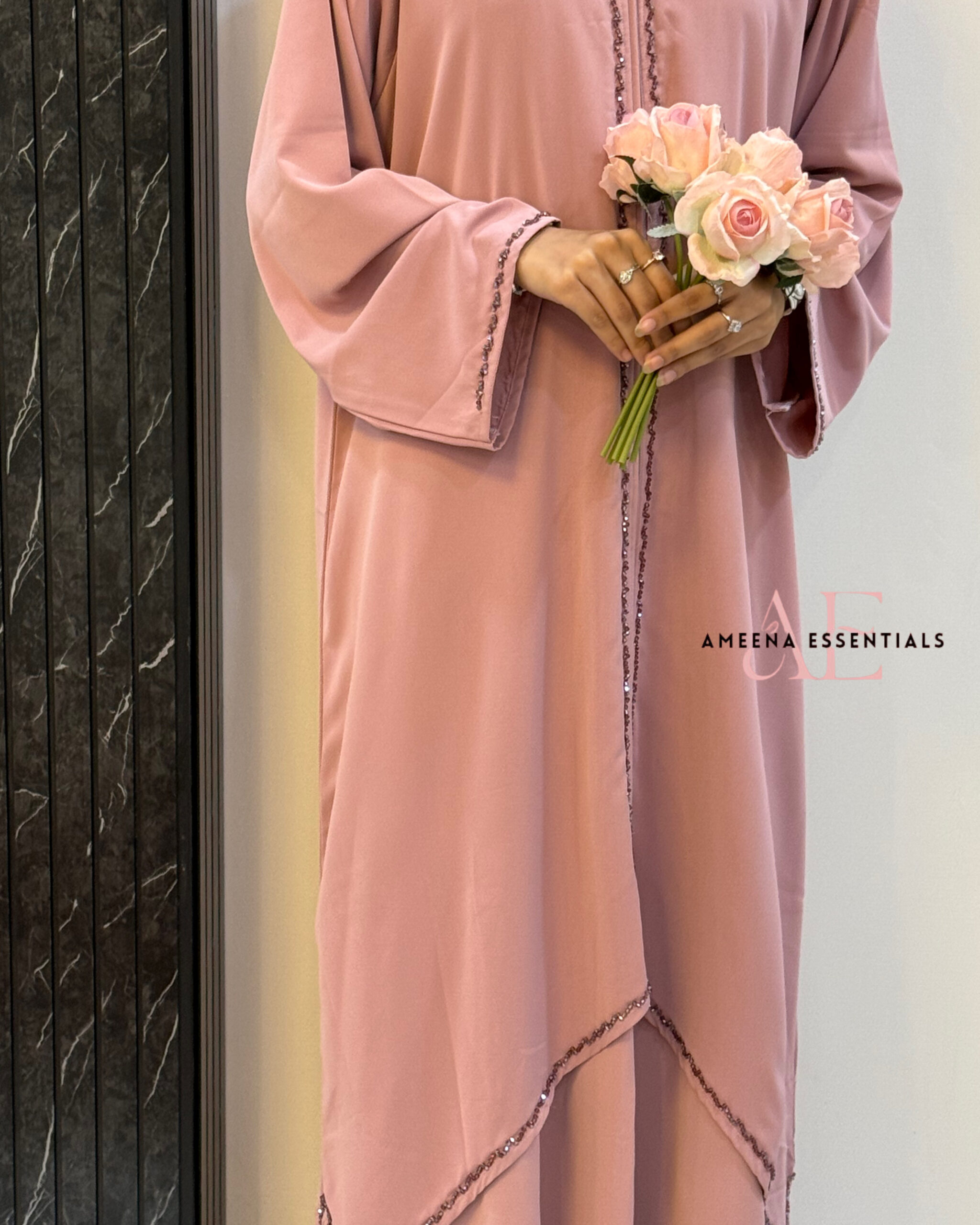 A beautifully flowing abaya crafted in premium Husna fabric, designed to give you that soft, graceful fall with an effortlessly royal feel 🤍