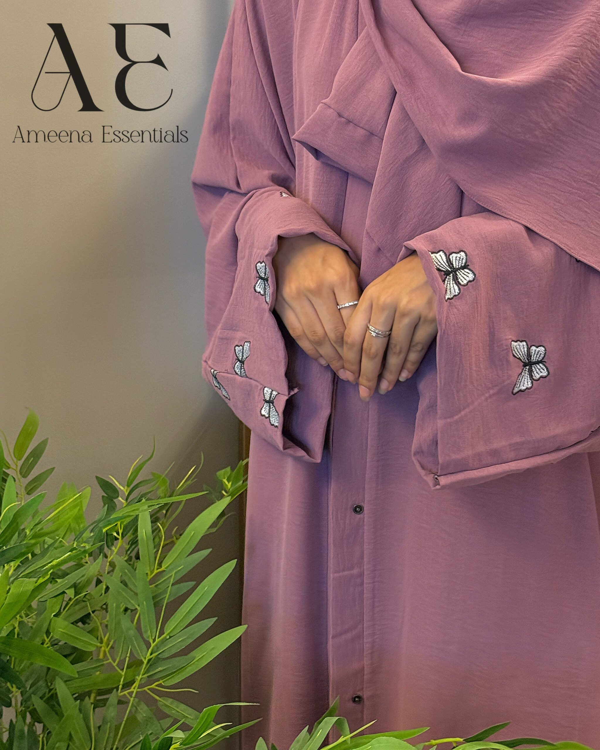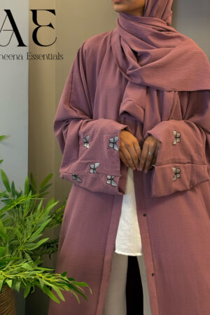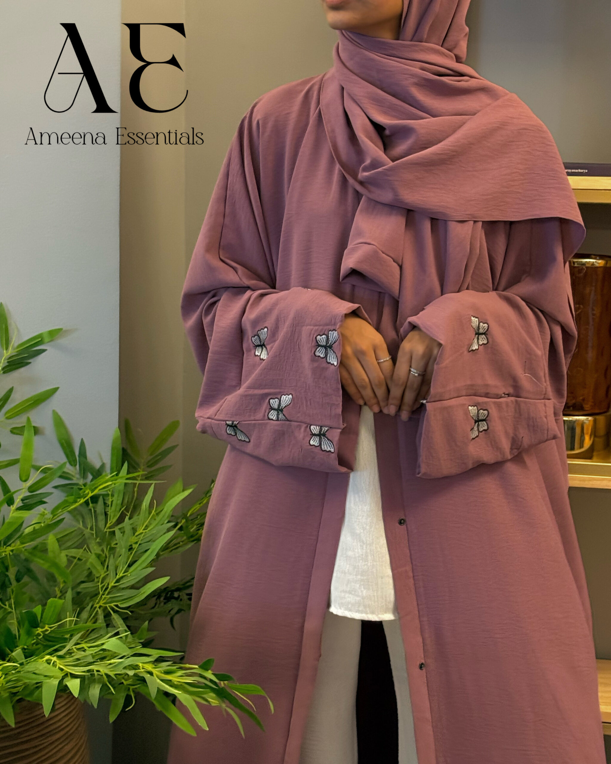 Crafted in a soothing CEY soft pink shade, this Butterfly Abaya flows gracefully with every movement. Designed with a relaxed silhouette and delicate drape, it offers effortless elegance and comfort. Perfect for everyday wear or special gatherings, this abaya brings a touch of softness, femininity, and timeless charm to your wardrobe.