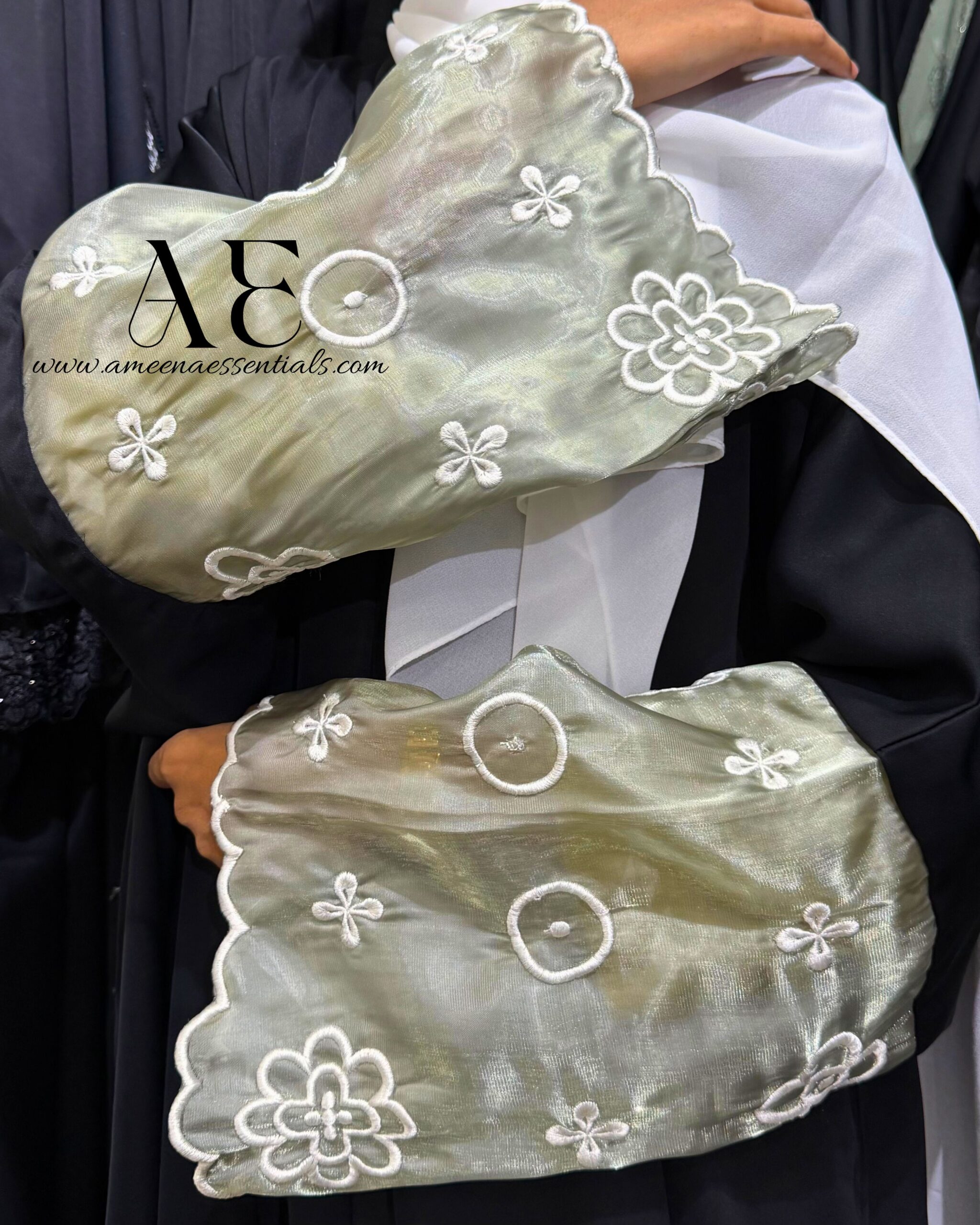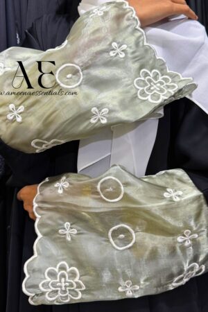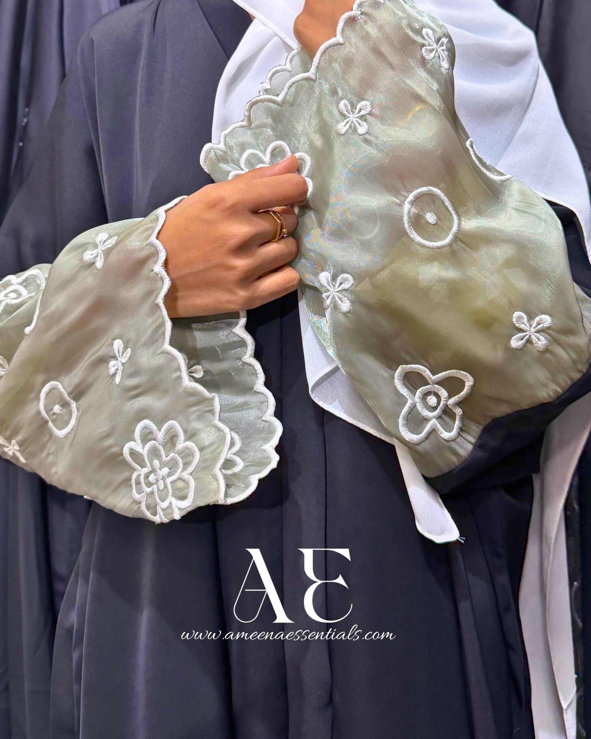 Crafted with elegance and comfort in mind, the Bloom Organza Abaya is made from premium Korean Nida fabric, offering a graceful fall and luxurious feel. The sleeves feature delicate organza embroidery, adding a soft floral charm for a timeless finish.