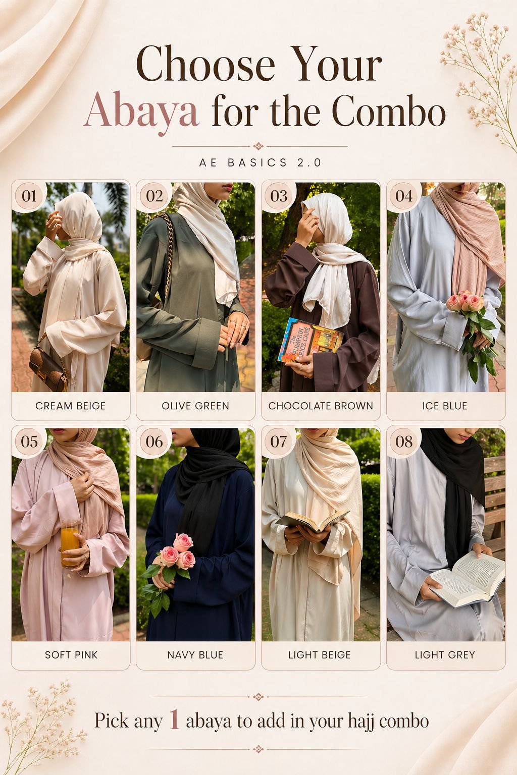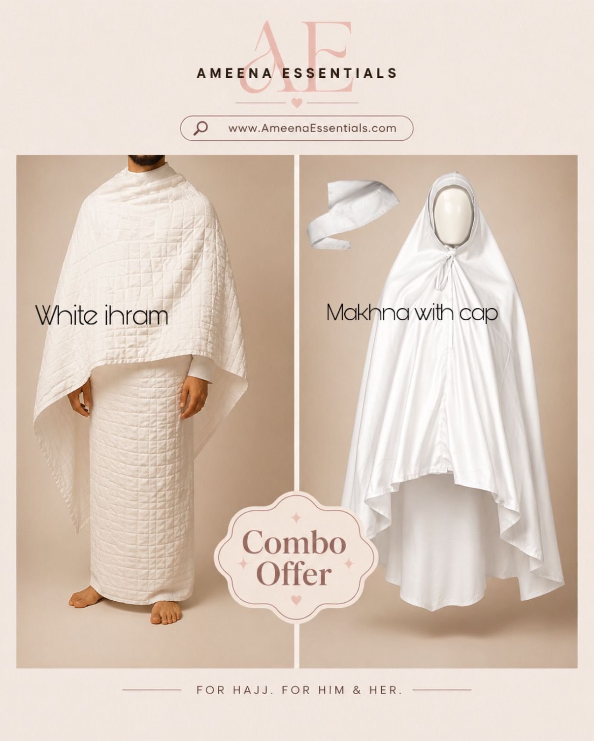 A thoughtfully curated Hajj/Umrah essential combo designed for comfort, ease, and modesty during your sacred journey π€