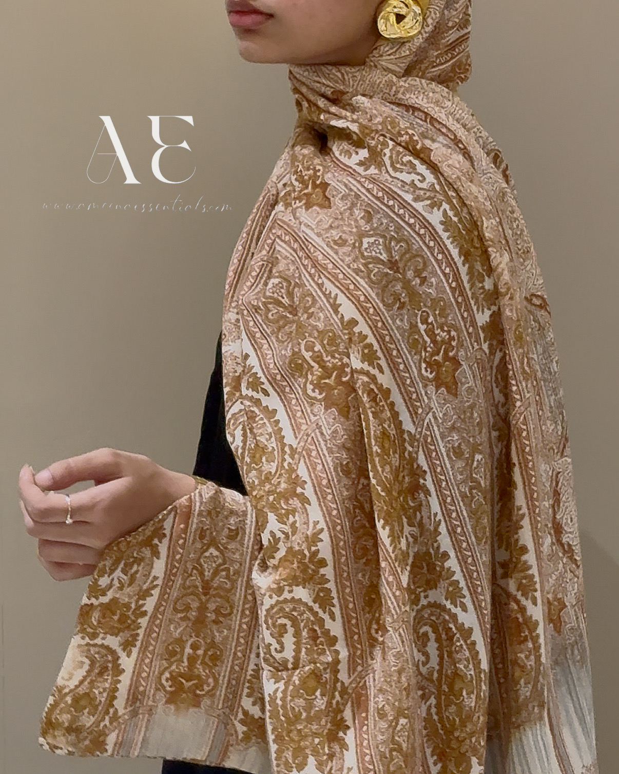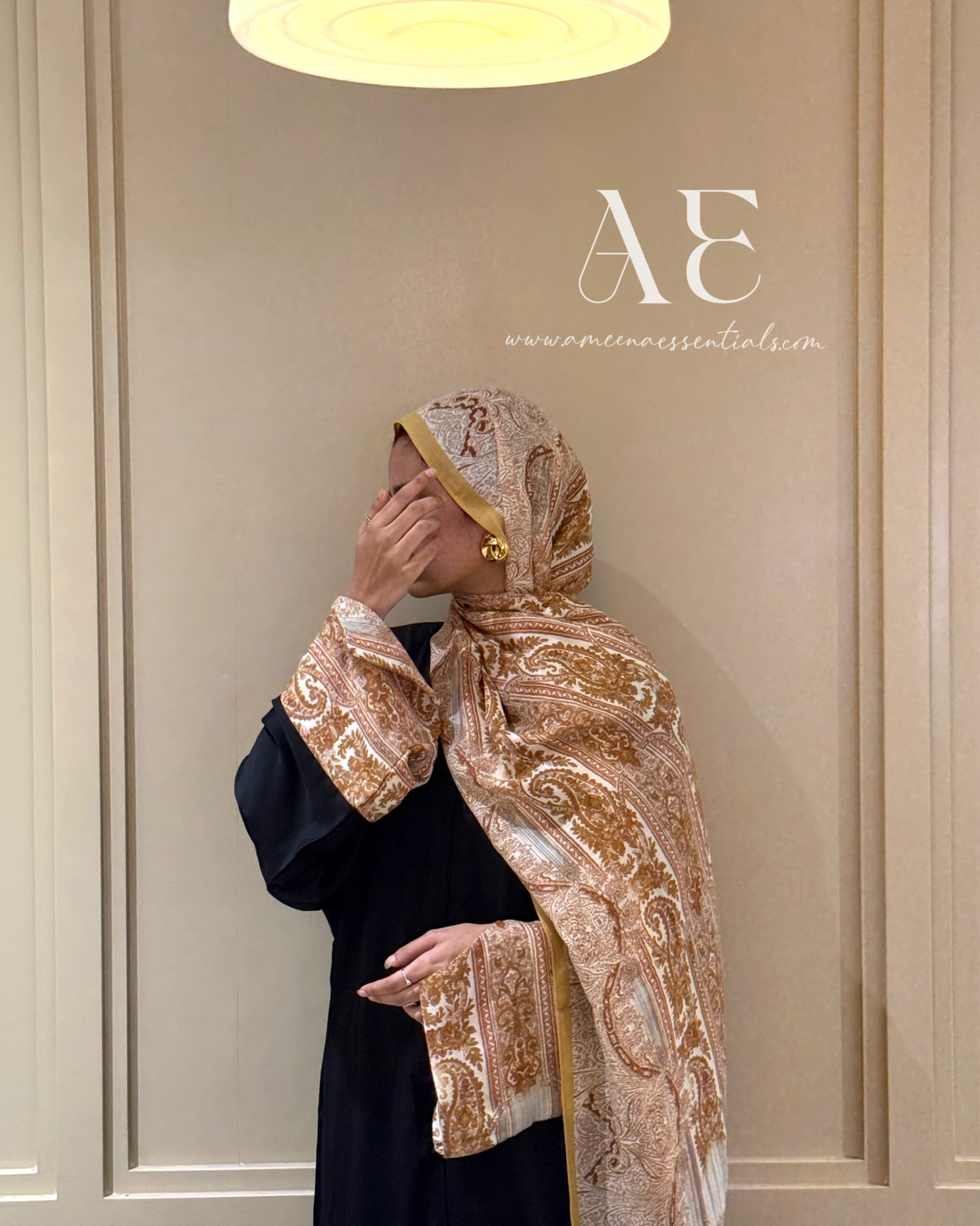 The Royal Pashmina Set 🍁a blend of luxury and grace, it’s an open button abaya crafted in premium TikTok silk with intricate pashmina details on sleeves paired with an elegant pashmina dupatta✨