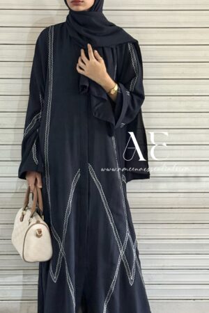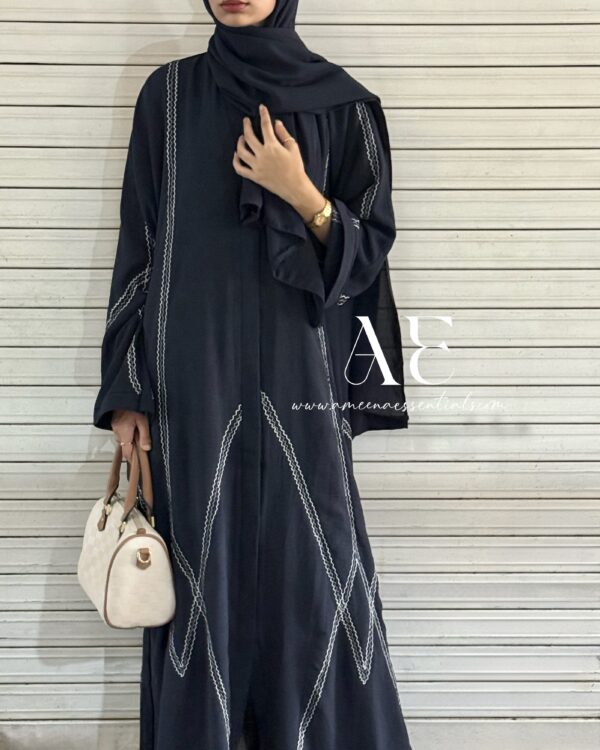 The Muse Abaya Collection is crafted in premium Cey fabric, known for its soft flow and elegant drape. Each abaya is paired with a matching chiffon dupatta in the same shade, giving you a complete and graceful look.